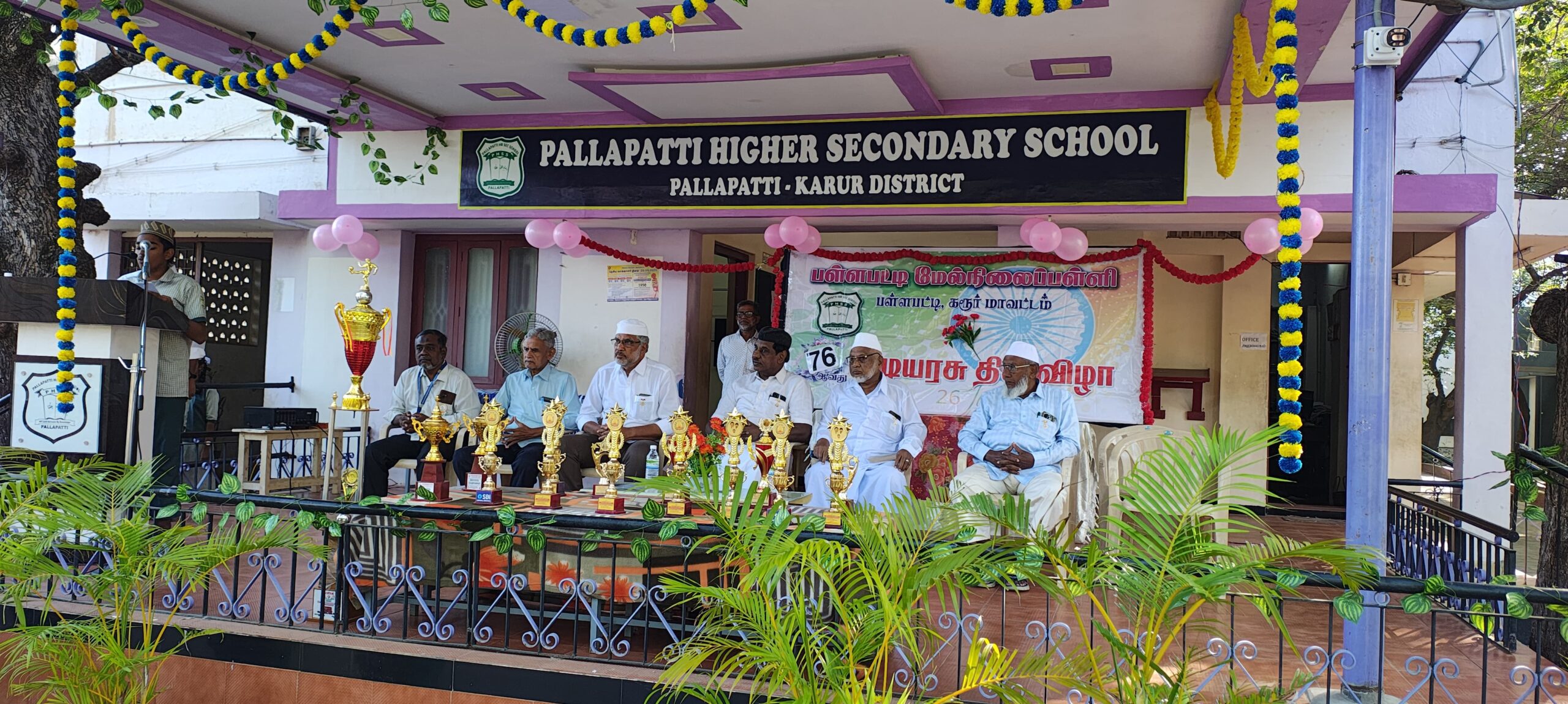 Pallapatti Higher Secondary School proudly celebrated the 76th Republic Day with great enthusiasm and patriotism. The event featured flag hoisting, cultural programs, and speeches that highlighted the importance of the Constitution and national unity.
