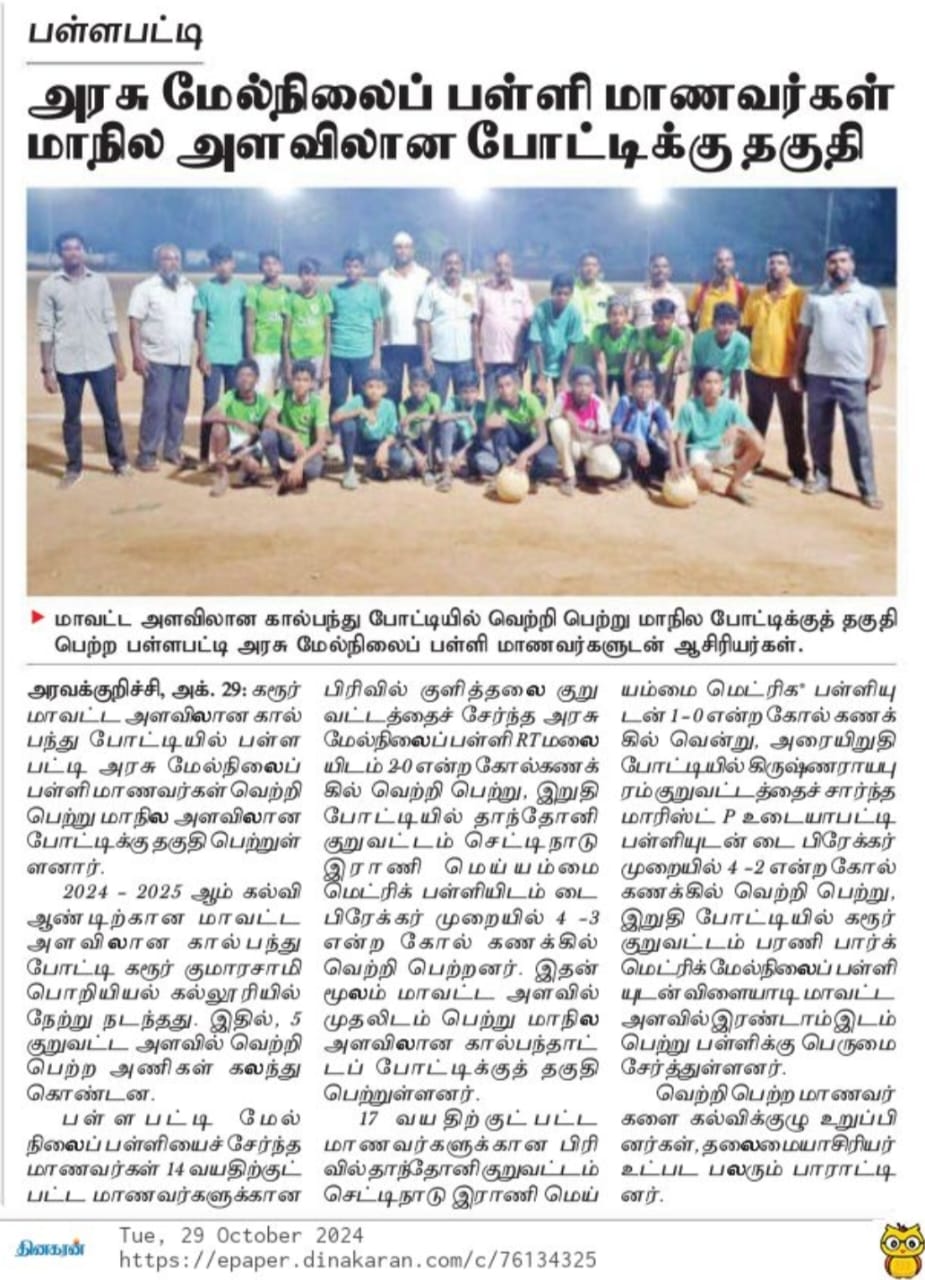 Pallapatti Higher Secondary School students delivered an exceptional performance in both the under 14 and under 17 categories.