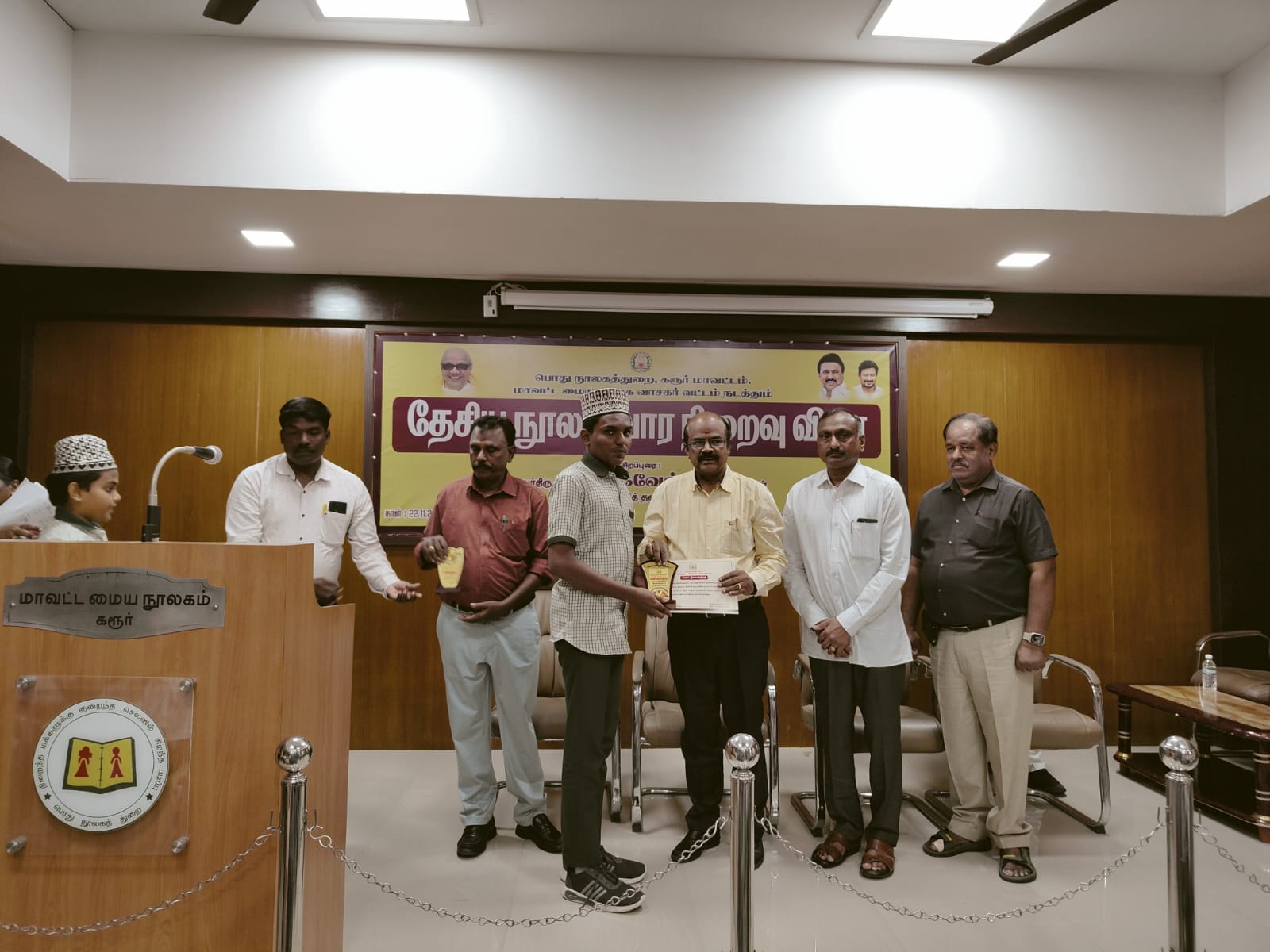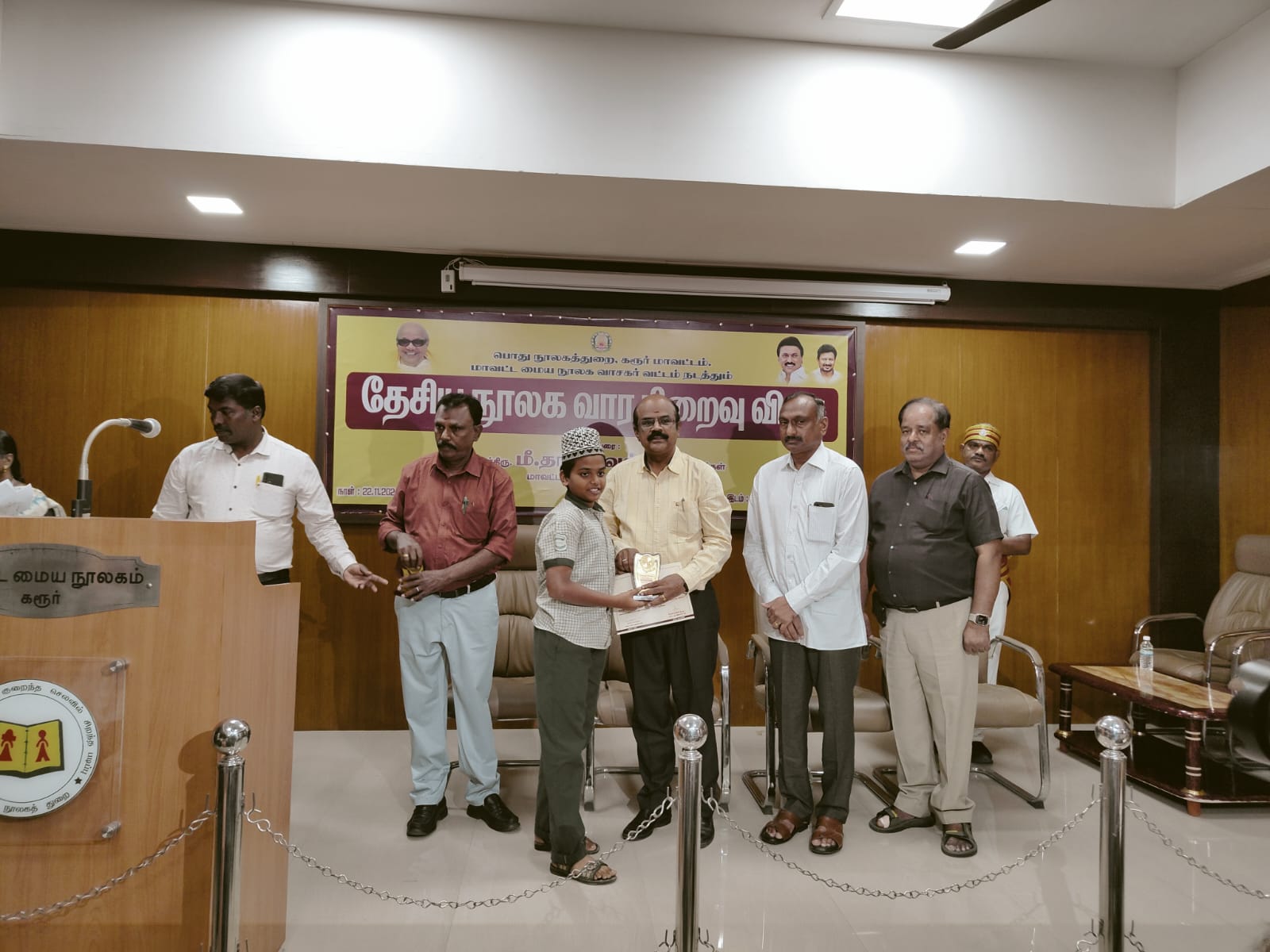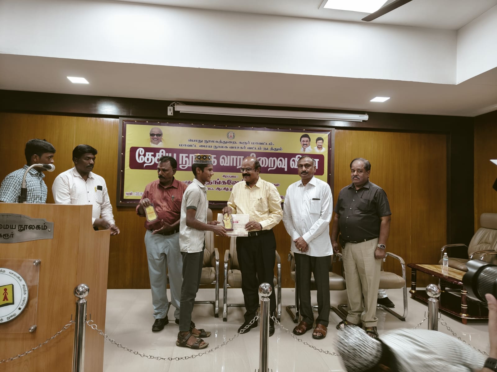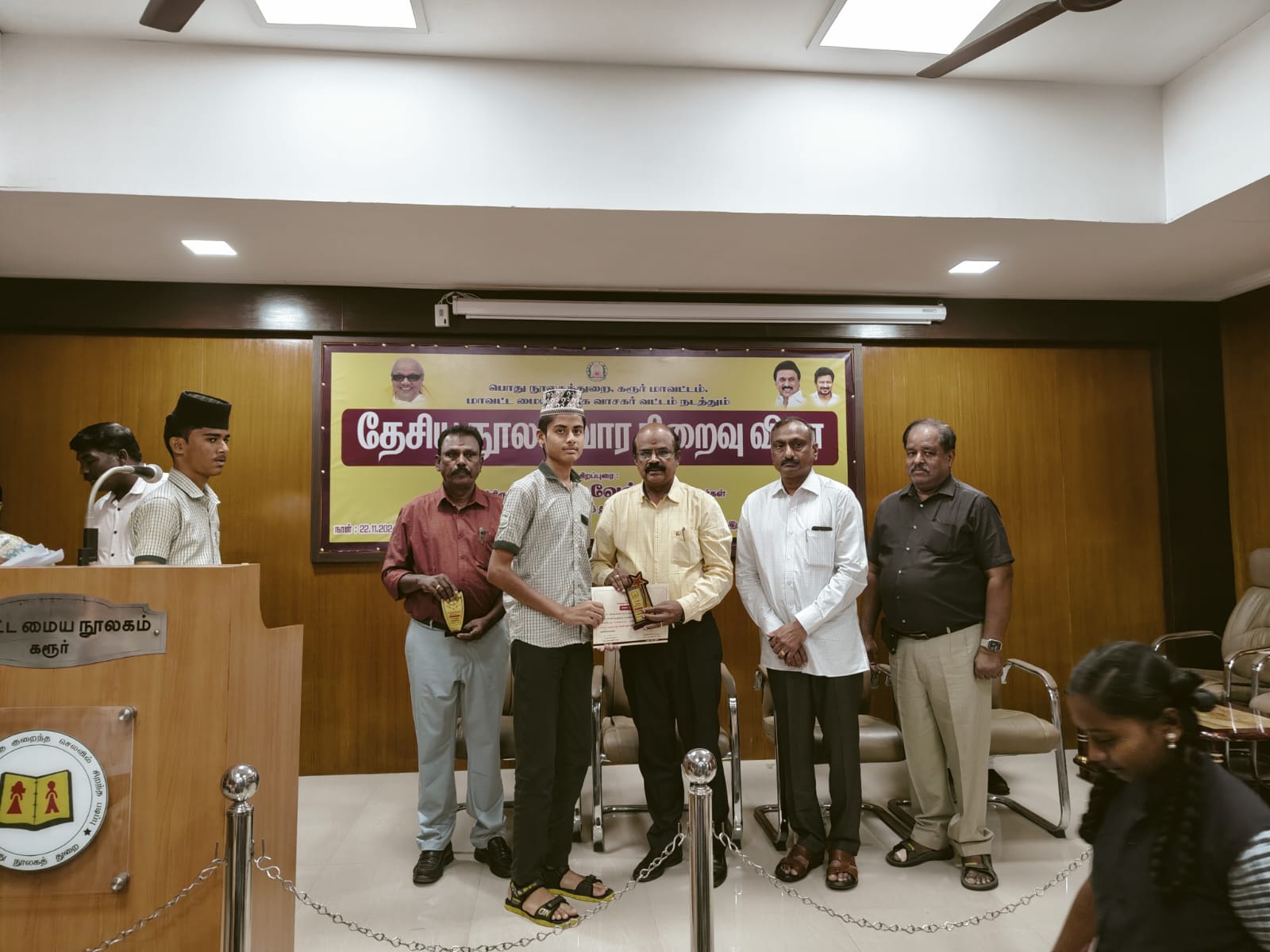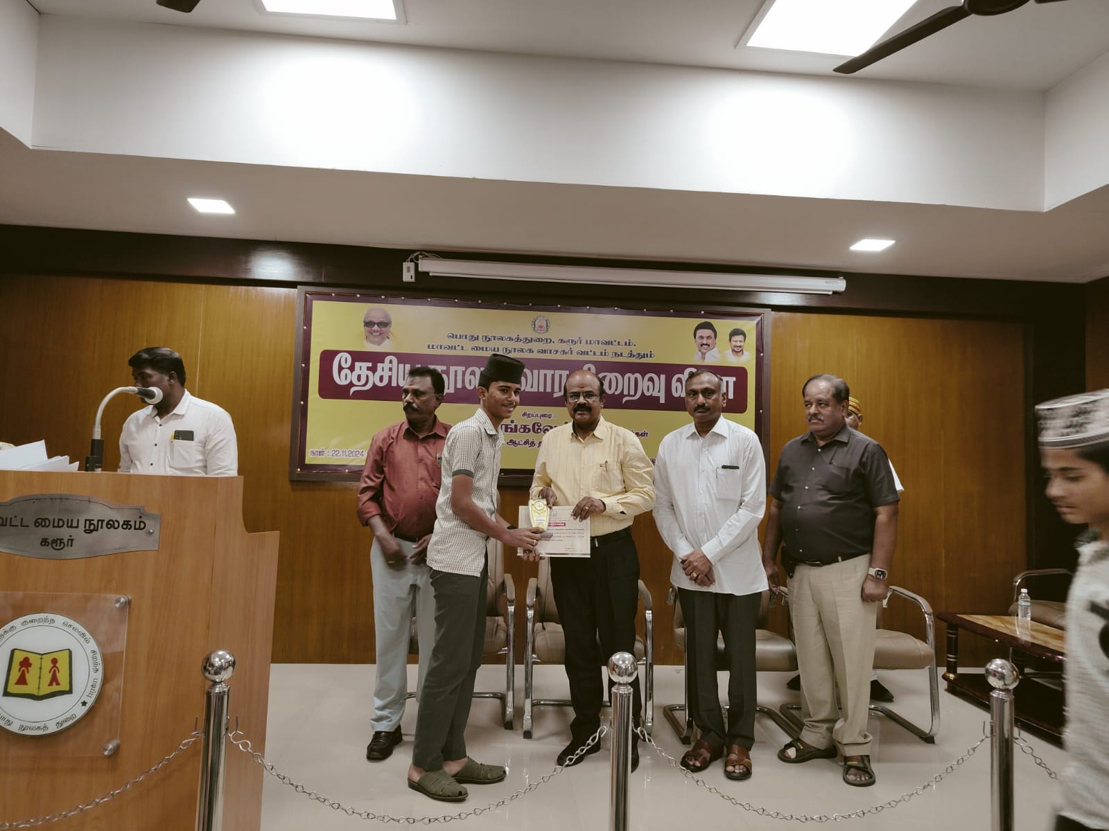 In recognition of their outstanding achievements, these students were felicitated on 22 November 2024 at the closing ceremony of the National Library Week held at the Karur District Central Library. The District Collector of Karur personally presented certificates of appreciation and lauded their talent and hard work.